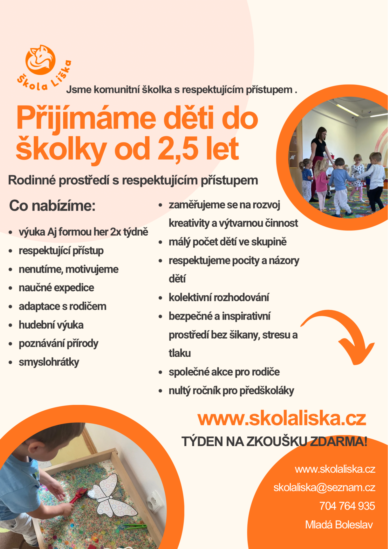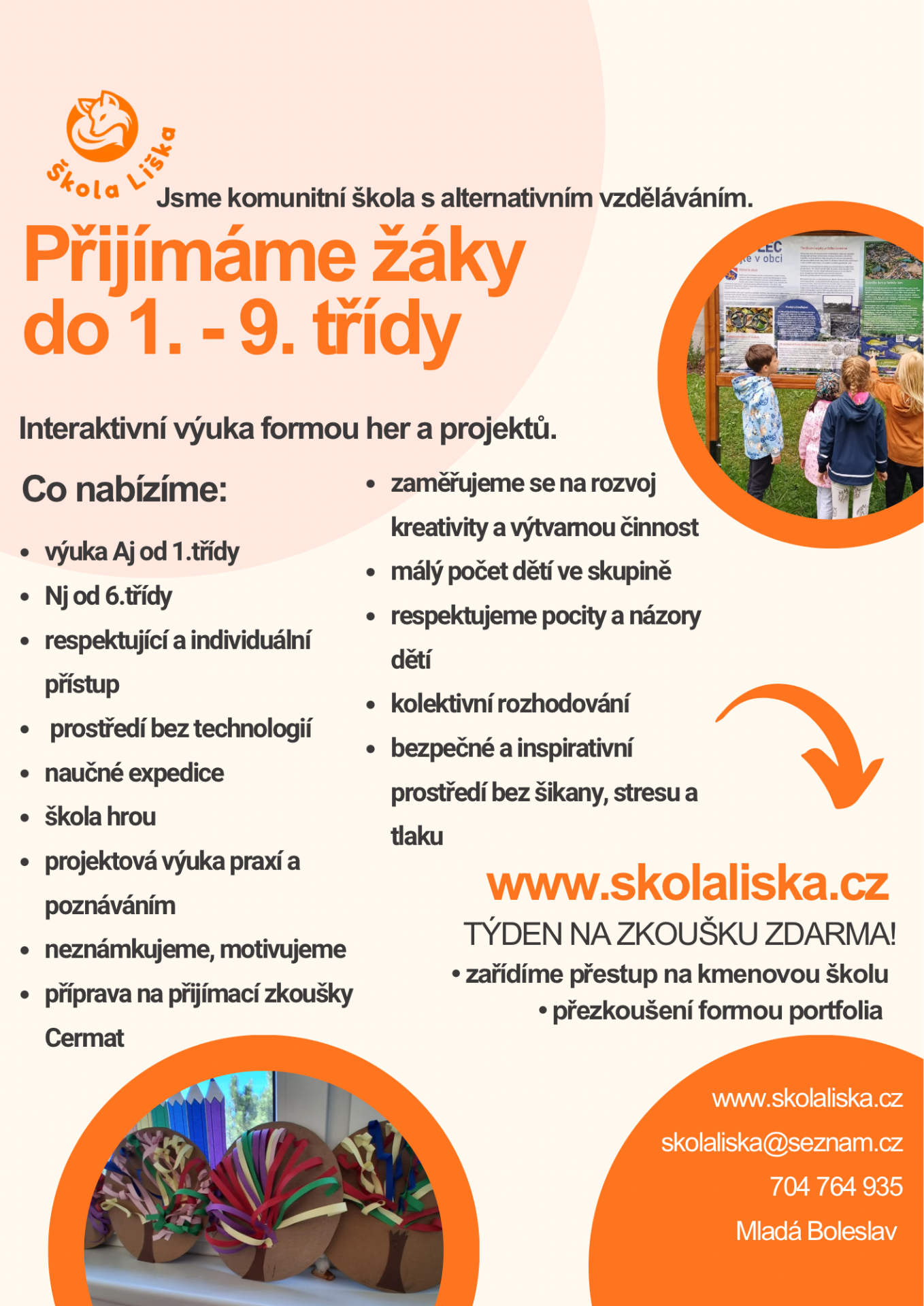 Vítejte na našich stránkách. Jsme komunitní skupina v Mladé Boleslavi pro děti od 1. do 9. třídy a školkové děti od 2 let. Jsme tým, který vytváří pro děti respektující a bezpečné prostředí, kde budou chtít trávit svůj čas. Vzděláváme formou her a projektů a jsme místem, kde se dětem dostane pochopení a respektu. Průvodcovství vnímáme jako poslání, a proto jej děláme s láskou a plným nasazením.